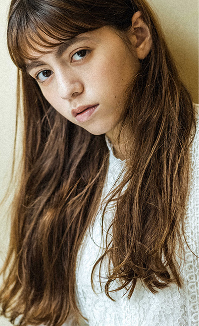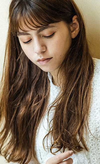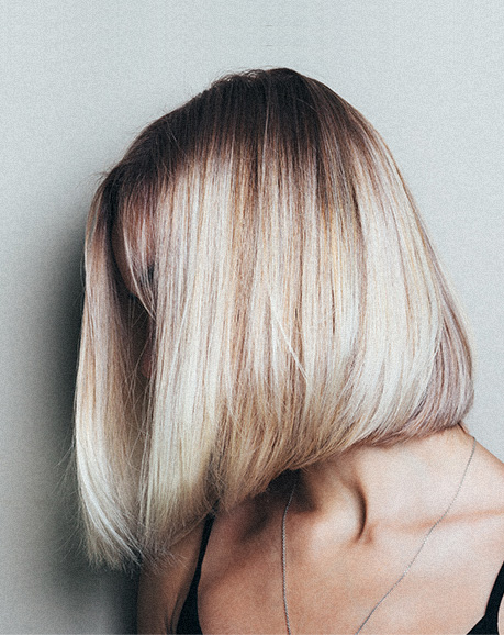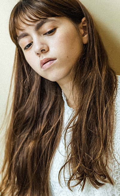 直線の美しさの重要な要素は、素材です。ダメージレスの髪の太さ、長さ、弾力などのしなやかさ、またカラーの透明度など、髪のコンディションすべてが直線の美しさに起因します。