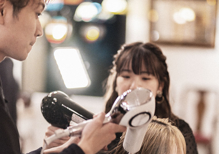 - サロン内にスタジオがあるため、1年目や2年目でも撮影を行うことが可能です。また、モデルを呼んだ撮影も実施しているので、アシスタントとして入ることもできます。